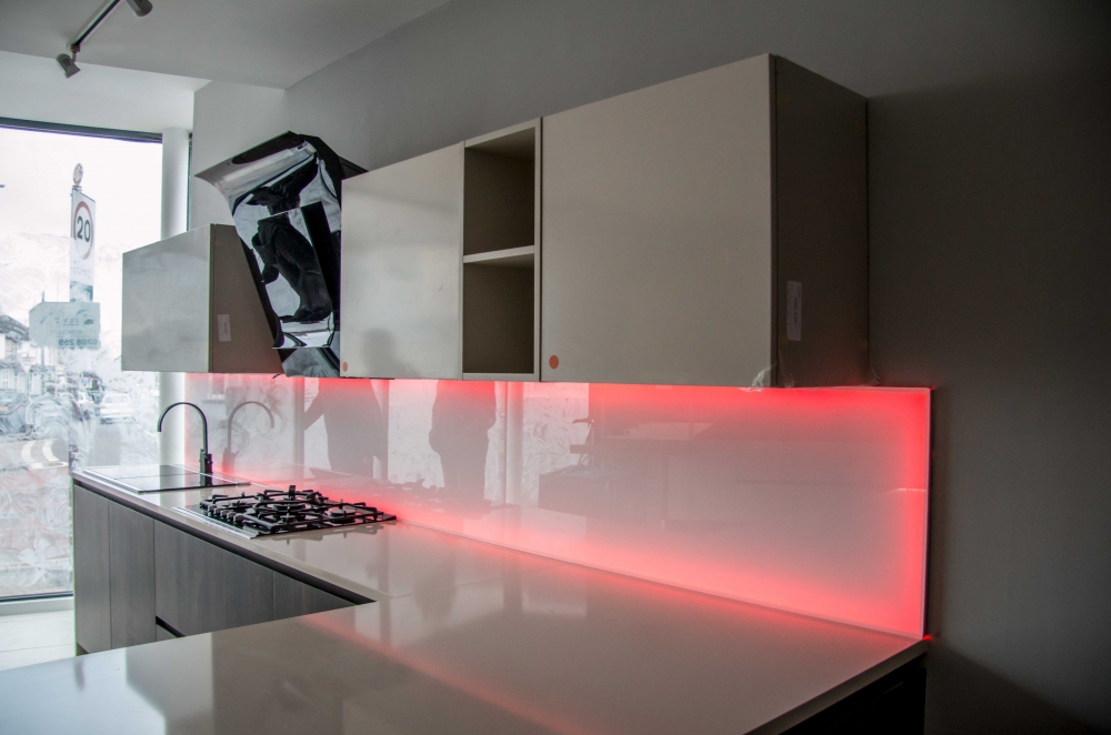 Les tabliers sont généralement rétro-éclairés avec une bande LED. Dans ce cas, de tels dispositifs d'éclairage jouent non seulement une fonction décorative, mais ajoutent également des flux de lumière à la surface de travail. Il y a plusieurs points importants à noter :