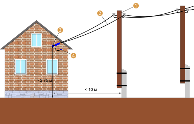 Lors de la clarification de cette question, il s'avère que lors du calcul des coûts, il faut prendre en compte l'emplacement du poteau, à partir duquel une branche est réalisée pour se connecter aux réseaux électriques. C'est sur une distance de 25 mètres que l'utilisateur devra poser un câble de la section requise pour son argent jusqu'à la maison.