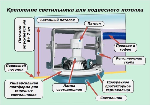 Selon l'apparence et les caractéristiques de conception, l'installation d'un modèle particulier au plafond peut différer. Algorithme de montage du luminaire au plafond :