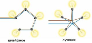 De par sa nature, le schéma de faisceau fait référence à une connexion parallèle, souvent utilisée pour les lustres. Le principe de réalisation consiste à poser un câble à chaque dispositif d'éclairage individuellement. Cette méthode est la plus longue et nécessite des coûts financiers importants en raison de la grande quantité de fil utilisé.Pour économiser de l'argent, le câble du standard est conduit au centre de la pièce et de là à chaque lampe. De plus, des fils monoconducteurs sont acheminés vers la phase et le zéro, qui sont posés sur les lampes.