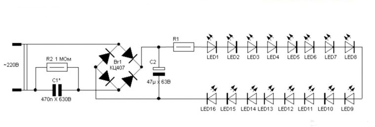 Le schéma de connexion des lampes à LED dans tous les cas ne présente aucune différence fondamentale.