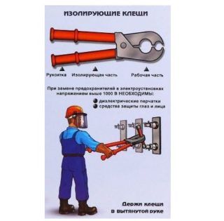 Les pinces isolantes sont utilisées lorsqu'il est nécessaire de remplacer les fusibles dans les installations électriques existantes jusqu'à 1000 Volts et plus. Lorsque vous travaillez avec eux, il est impératif d'utiliser des équipements de protection supplémentaires (gants et lunettes). Les indicateurs de tension sont demandés lorsque vous devez vous assurer de sa présence ou de son absence au point testé. Ils sont disponibles en deux versions :