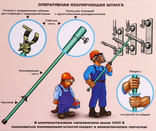 - Les dispositifs de protection avec poignées de préhension (ils sont utilisés lors de travaux dans des installations électriques avec n'importe quelle tension) doivent avoir des anneaux de retenue sur les supports.