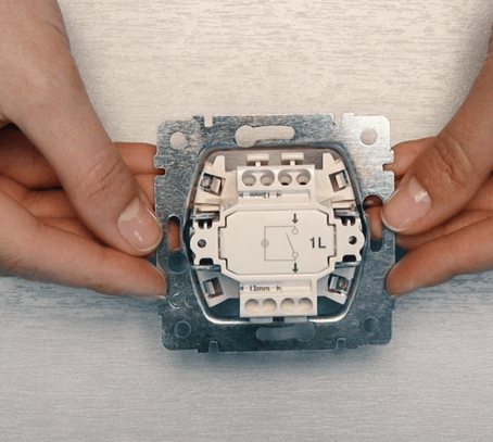- Avec bornes à ressort. Les fils dénudés sont insérés dans un trou technique spécial et fixés automatiquement.