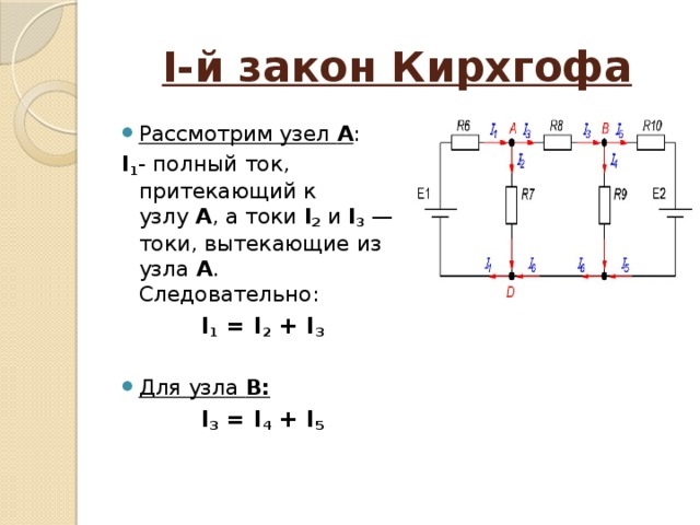 En plus de la règle de base en génie électrique, les lois de Kirchhoff sont utilisées. On dit que la somme des courants d'entrée est égale à la somme des courants de sortie. La seconde est que la somme des champs électromagnétiques est égale à la somme des chutes de tension aux bornes des éléments internes du circuit électrique.