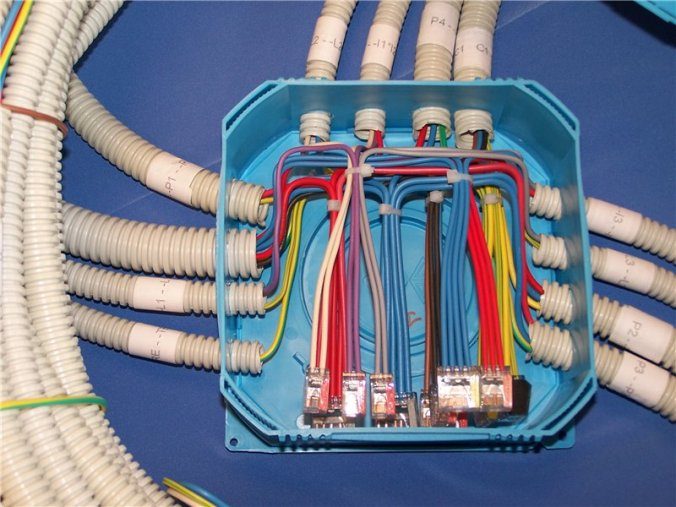 Le câble principal est introduit dans une boîte de jonction spéciale, à partir de laquelle le câblage est effectué vers les chambres et les salles de bains. A ce stade, il est nécessaire de déterminer quel type de connexion filaire sera utilisé : série, parallèle, combiné.