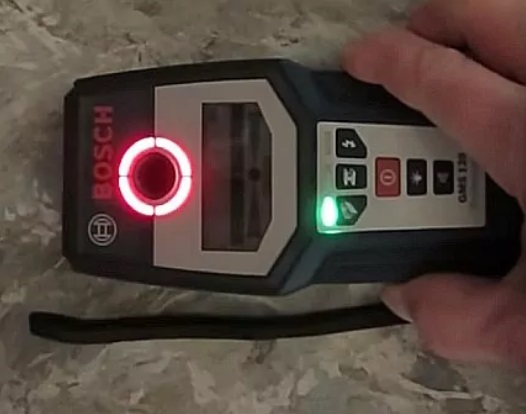 Lorsqu'un détecteur professionnel de Bosch fonctionne, lorsqu'un fil caché est détecté, le voyant lumineux devient rouge et les marques mobiles graphiques localisées sur l'écran LCD convergent vers le centre, indiquant avec précision son emplacement. Guidé par les lectures du capteur, vous pouvez faire une marque avec un crayon.