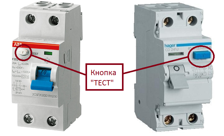 - Dans les modèles RCD modernes, il est possible de tester l'appareil à l'aide d'un bouton spécial "Test".