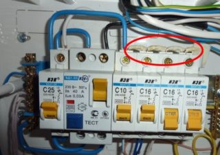 Le zéro d'un réseau monophasé est connecté à la borne supérieure sous la désignation "N" et est retiré du contact inférieur, qui porte un marquage similaire. Dans le cas de l'installation d'un appareil tétrapolaire dans une ligne électrique triphasée, le nombre de contacts de phase triplera (les bornes N, auxquelles la terre doit être connectée, resteront inchangées).