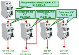Lors de l'examen de l'objectif des dispositifs de type différentiel, il convient de garder à l'esprit qu'ils sont capables de protéger non seulement les circuits d'alimentation. Un tel dispositif est souvent utilisé pour protéger le câblage posé devant les sources lumineuses. Ceci est typique pour les pièces humides telles que les bains.