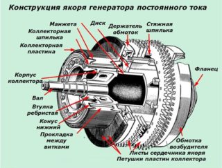 L'ancre est constituée de plaques d'acier avec de petites indentations, des enroulements y sont placés. Leurs extrémités commutent nécessairement avec le collecteur, qui est constitué de plaques de cuivre séparées par des diélectriques. A la fin de l'assemblage, l'arbre, l'induit avec enroulements et le collecteur ne font qu'un.