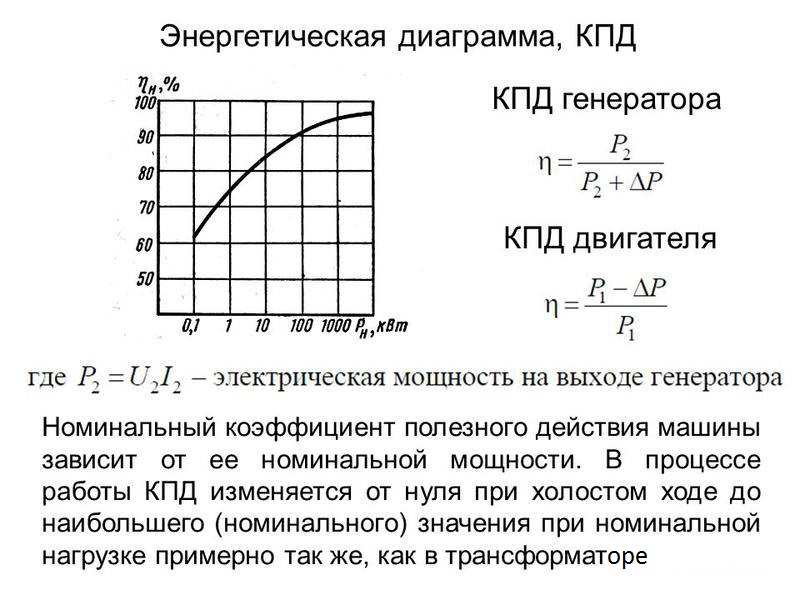 Au ralenti, le rendement est nul, les performances maximales sont atteintes aux charges nominales.Dans les puissants modèles innovants de générateurs à courant continu, le rendement est proche de 90 %.