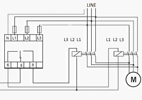La nécessité d'utiliser un relais de rotation de phase est associée à l'inadmissibilité de l'inversion du moteur, qui peut endommager le mécanisme lui-même et menacer également le personnel de maintenance. Les dispositions du PUE prescrivent l'utilisation de ce dispositif pour tout équipement, y compris les convoyeurs, les escaliers mécaniques, les ascenseurs et autres systèmes mobiles.