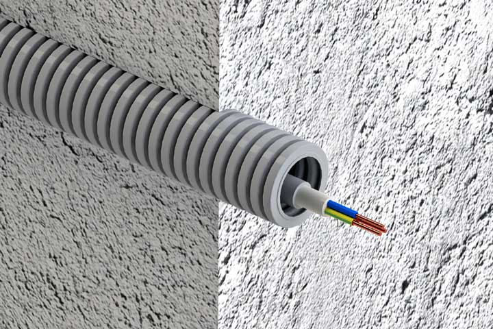 Pour les câbles électriques, des ondulations électriques spéciales en chlorure de polyvinyle sont le plus souvent utilisées.