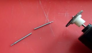 - Limez la partie pliée des broches et rectifiez-les pour qu'elles s'insèrent avec effort dans un morceau de tuyau en plastique.
