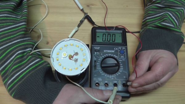 La bande LED est vérifiée de manière problématique par un multimert, car elle ne s'allume pas. Une faible lumière se produit lors du test en mode Hfe. Le test est également compliqué par des claquages non pas des diodes elles-mêmes, mais des pistes de contact ou des sections conductrices de courant. Pour connaître un dysfonctionnement :