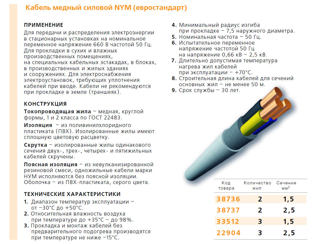Les câbles d'alimentation NYM appartiennent à la catégorie des connecteurs électriques en cuivre. Leur tâche principale est de réaliser le câblage interne. Ils sont posés dans diverses structures de bâtiment, y compris celles présentant un risque d'incendie. Initialement, ils étaient fabriqués et utilisés uniquement en Europe. Il existe aujourd'hui en Russie plusieurs usines spécialisées dans la production de câbles électriques selon leurs propres spécifications.