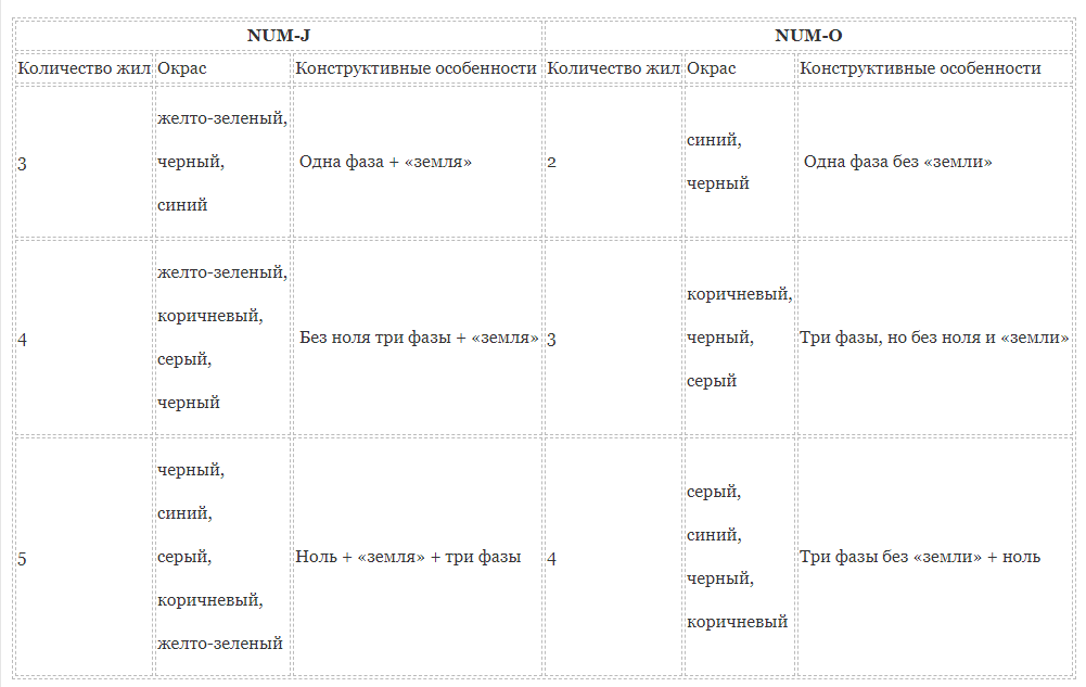 - Conducteur en cuivre de haute qualité. Le nombre dépend de la modification du fil, il peut être de 1 à 5 conducteurs. La section transversale des veines est également variable, la valeur varie dans la plage de 1,5 à 35 mm2.