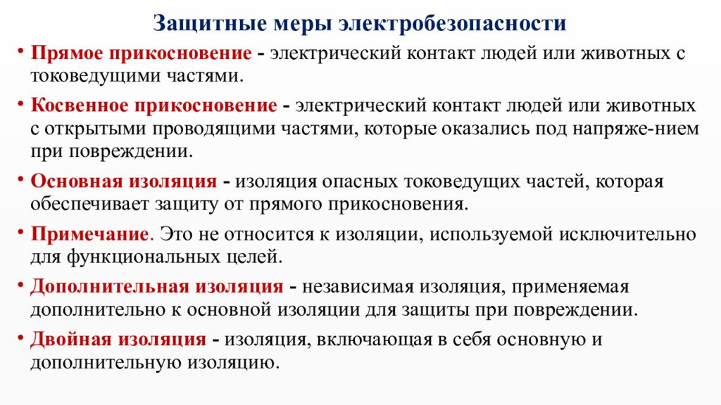 Mesures de protection pour la sécurité électrique