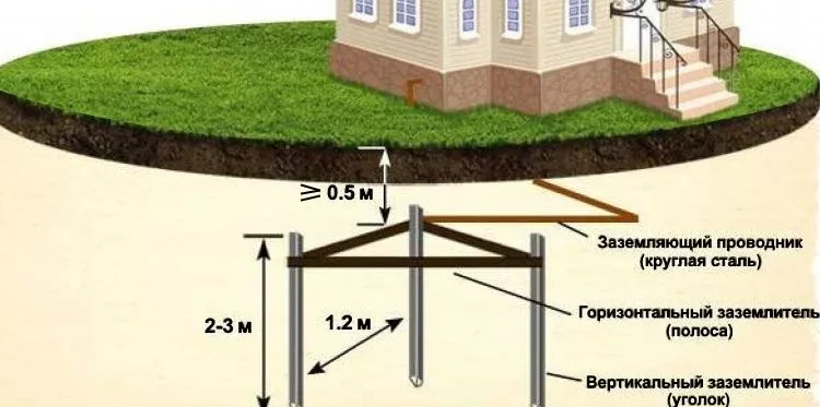 Pour une petite maison privée, une structure triangulaire interne avec un bord de 100-120 cm est suffisante.Pour protéger contre les dommages à un objet d'une capacité de 50 kW ou plus, un circuit d'une longueur totale d'au moins 20 m est requis .
