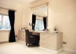 En règle générale, une coiffeuse est installée dans les pièces de grande surface. Visuellement, il s'agit d'un petit meuble, équipé en plus d'un miroir. Plusieurs appareils électriques y sont rangés, par exemple un sèche-cheveux, un épilateur, un fer à lisser, etc., ainsi que des produits cosmétiques de décoration et de soin. Il est important qu'une source d'alimentation soit située près de la coiffeuse. Si le nombre d'appareils est impressionnant, il vaut mieux installer immédiatement 3-4 sockets. Un point est monté au-dessus de la surface de la table à une distance d'au moins 2 cm.