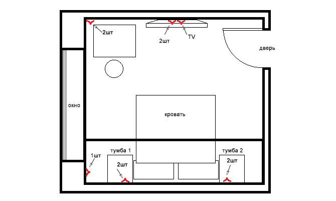 Pour créer des conditions confortables pour rester dans la chambre, ils calculent le nombre minimum de prises, ainsi que leur emplacement dans la pièce.