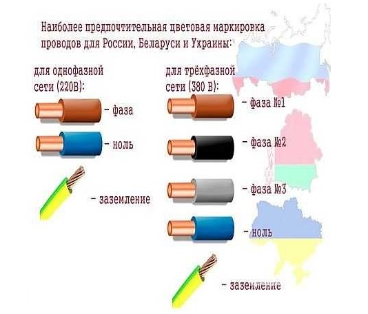 Il existe également une coloration non standard, qui dépend de la marque des fils. Dans ce cas, le zéro doit être bleu pour simplifier la recherche. Dans ce cas, le sol peut être noir ou blanc, comme il était peint auparavant. Le fil restant sera en phase. Cette méthode de détermination avec coloration non standard est dangereuse, il est donc préférable d'utiliser un testeur.