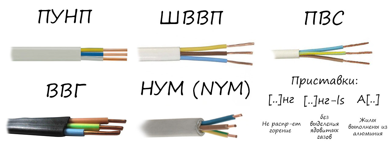 Il est possible de déchiffrer le marquage PUNGP 3x2,5 comme un fil plat flexible universel à trois conducteurs d'une section de 2,5 mm2 chacun. La caractéristique réelle de la section est inférieure de 30% à la valeur nominale. Cela est dû à l'absence d'une norme de production unique.