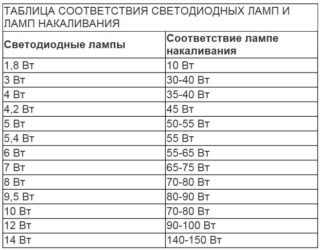 Exemple : Un hall qui a une superficie totale de 20 m². La puissance requise est de 60 watts de LED. Un lustre à 4 bras nécessitera des lampes de 12-15 W, ce qui équivaut à 4 analogues avec des filaments de 125 W chacun.