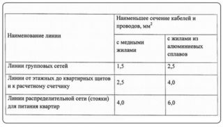 Le paramètre déterminant de la section est le diamètre (d). Aux faibles valeurs de courant, un noyau en cuivre est utilisé avec un diamètre de plus de 1 mm2, un en aluminium - 2 mm2. Lorsque vous travaillez avec des courants importants, le diamètre est sélectionné en fonction de la puissance du réseau. Le choix du diamètre se fait selon le tableau. 3, en tenant compte de la pose du câble à travers le tuyau ou ouvert.