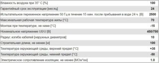 - limite de température pour les travaux d'installation - moins 15 ° Celsius;