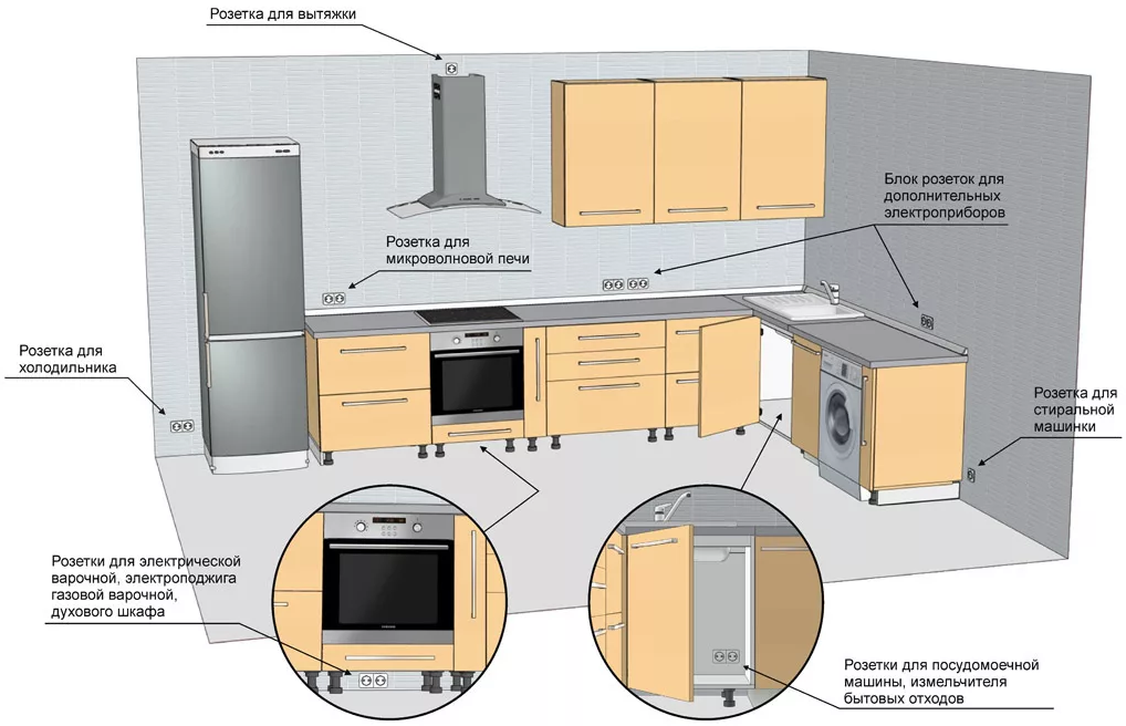 - L'un des groupes d'appareils électriques est conçu pour les appareils ménagers au sol, les plus courants d'entre eux sont un réfrigérateur, un four, un congélateur et éventuellement une machine à laver.