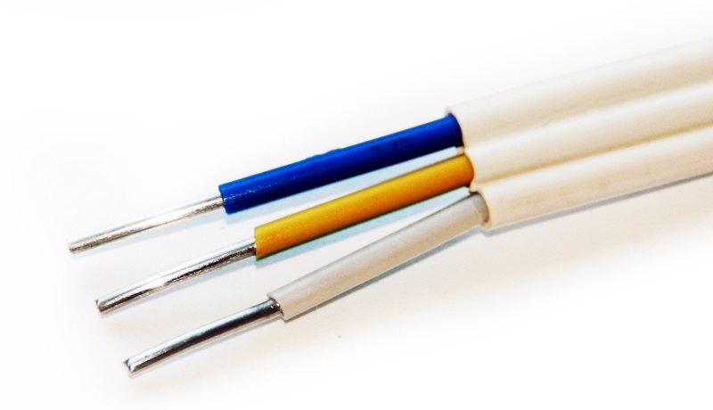 Deux ou trois fils sont placés dans la gaine PVC. La modification est plate, ressemble à un cordon aplati avec deux parties connectées. Il existe des variétés à trois conducteurs et une structure toronnée de la partie conductrice de courant.