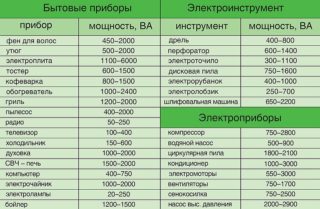 En résumant les indicateurs, nous obtenons 6500 W ou 6,5 kilowatts. Ensuite, vous devez vous référer au tableau des machines, en fonction de la puissance de connexion.