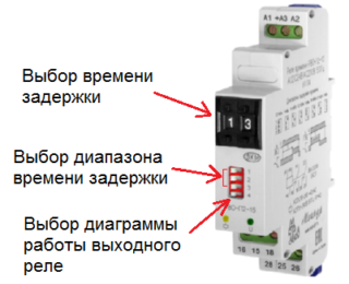 Dans chaque échantillon individuel du relais temporisé, plusieurs algorithmes de travail sont fournis à la fois, sélectionnés à la discrétion de l'utilisateur. L'apparence des schémas fonctionnels est indiquée sur le corps du produit, vous pouvez également vous y familiariser avec l'emplacement de ses contacts.