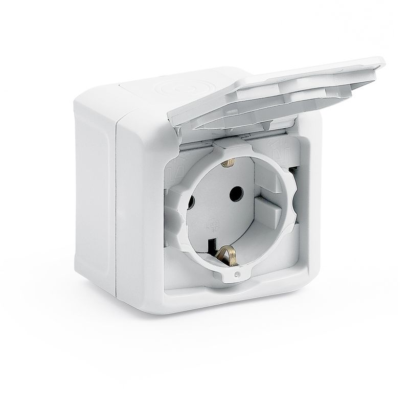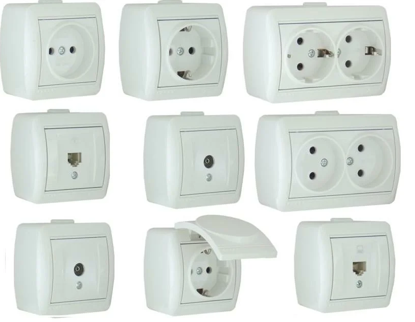 La prise de courant ouverte a une conception fermée, toutes les pièces sont situées à l'intérieur du boîtier. La principale différence par rapport aux homologues internes est qu'il n'est pas nécessaire de faire un trou dans la surface pour installer les produits.