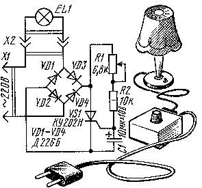 Le régulateur de tension sur le thyristor ku202n est fermé de la manière suivante :