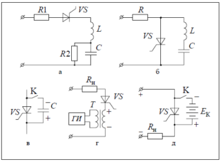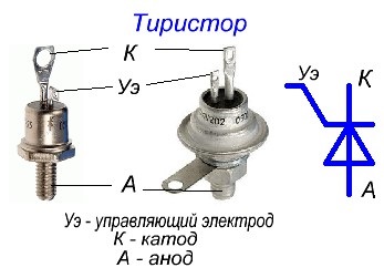 Le thyristor se ferme lorsque le courant qui le traverse est nul et que la tension qui le traverse n'est pas nulle.KU-201 et KU-202 sont des thyristors commandés par l'anode, ils sont représentés différemment dans les schémas.