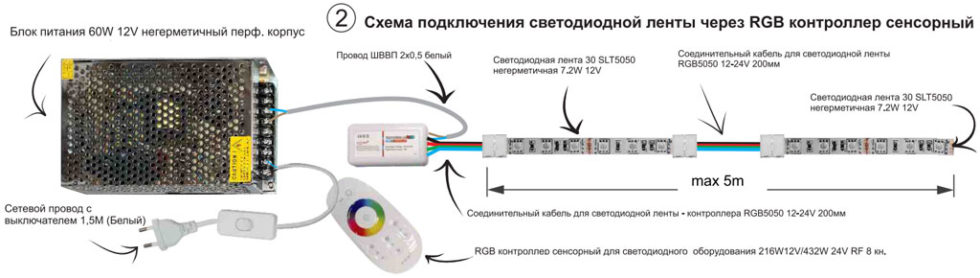 Vous aurez besoin de connecteurs spéciaux ou de fers à souder de faible puissance (25, 40 W) pour connecter les fils. La section de câble standard est de 1,5 mm2. Pour un éclairement supérieur à 5 m, le calcul est effectué individuellement.