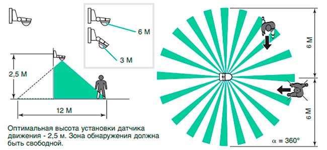 - La meilleure option de localisation est la zone de contact entre les zones éclairées et sombres de l'objet. Il est important que l'appareil réagisse immédiatement au mouvement à la limite d'une zone non éclairée, en allumant immédiatement la lampe lorsqu'une personne en mouvement se déplace vers une partie sombre du territoire.