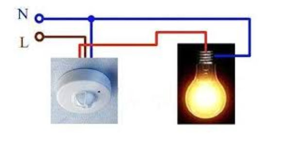 Sous le capot arrière de l'appareil, il y a un bornier avec trois fils colorés sortis du boîtier. Les fils sont connectés à des bornes ou à des cosses isolées si la connexion est réalisée à l'aide d'un câble multiconducteur. Le capteur est connecté au secteur, l'alimentation est fournie par le fil marron de la phase L et par le fil bleu de la phase zéro. A la sortie du boîtier, les deux phases vont à la lampe à incandescence du dispositif d'éclairage ou à d'autres dispositifs, dont l'inclusion est nécessaire lorsque des signes de mouvement apparaissent dans la zone de couverture. Si un mouvement est détecté dans la zone de sensibilité, l'appareil est déclenché, le contact du relais se ferme avec l'alimentation en courant de la lampe et elle s'allume.