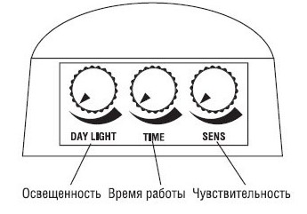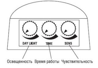 - Le régulateur "SENS" permet de régler la sensibilité de l'appareil afin qu'il réponde clairement à l'apparition d'une personne ou d'une voiture dans la zone contrôlée, mais ne fonctionne pas lorsque les animaux se déplacent.De plus, ce paramètre est responsable de la réponse du capteur au mouvement à la limite la plus éloignée de la zone de contrôle. Plus sa valeur est élevée, plus il est garanti que l'appareil se déclenchera en détectant un mouvement à une distance considérable au sein de l'objet protégé. En hiver, dans des conditions d'éclairage plus faible, la sensibilité doit être augmentée et avec le début de l'été, elle doit être diminuée, éliminant ainsi les fausses alarmes. Dans certains cas, la sensibilité du capteur peut être augmentée en changeant l'angle de sa direction.