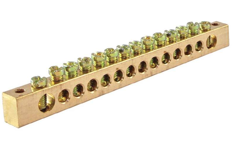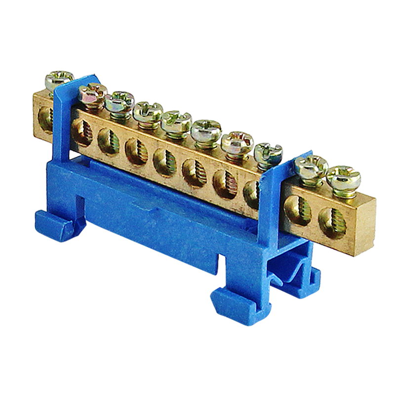 La connexion des conducteurs de mise à la terre et de neutre s'effectue à l'aide d'un bus neutre. Sa construction se compose d'un noyau conducteur et d'une base en plastique, qui est montée sur un rail DIN. Le noyau est en cuivre électrique spécial ou en laiton. L'élément conducteur a des trous et des boulons de serrage. Leur présence permet un câblage soigné et sûr dans les ensembles d'appareillage. Les modèles de bus zéro sont fabriqués en différentes longueurs, ce qui vous permet de réaliser le nombre requis de trous de montage dans le noyau. Leur principal domaine d'application est les réseaux AC ou DC, conçus pour des tensions de fonctionnement jusqu'à 400V.