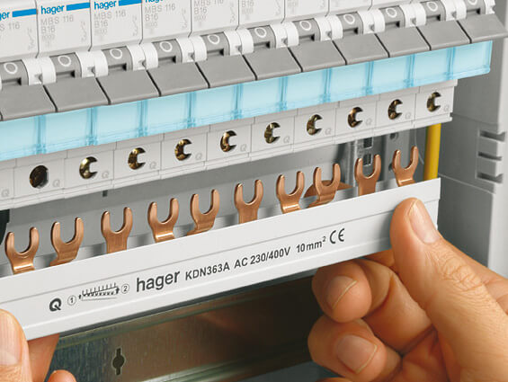 Un peigne de connexion triphasé utilisé pour combiner l'entrée des disjoncteurs et des disjoncteurs différentiels est un moyen très fiable d'obtenir une unité structurelle unique. Des rangées de plusieurs types de modules différents avec un bus de connexion fiable ne sont pas installées uniquement dans des armoires de distribution fermées. Une telle structure peut être montée à tout autre endroit à l'intérieur de la maison, bien protégé des intempéries et spécialement désigné à cet effet.