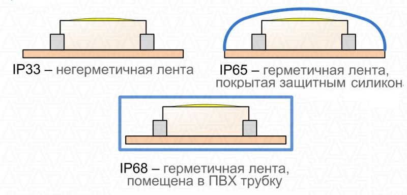 Lors du choix d'un ruban, il convient de considérer que la protection réduit la luminosité de la lueur et fait chauffer la carte.
