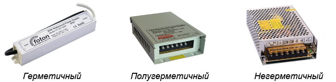 Le dispositif d'éclairage est connecté via une alimentation qui modifie les paramètres de la tension secteur à 220 V. Les indicateurs de fonctionnement de l'appareil sont de 12 ou 24V. Les convertisseurs sont :