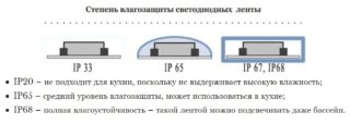 Le degré de protection de l'éclairage LED peut être IP67 ou IP68. Grâce au boîtier en tube de silicone dense, le dispositif d'éclairage peut être utilisé dans des conditions d'humidité extrêmes à n'importe quelle température ambiante. Selon le degré de rigidité de la base, le ruban peut être utilisé comme unité d'éclairage indépendante ou comme modules séparés, à partir desquels des conceptions uniques de lampes sont créées.