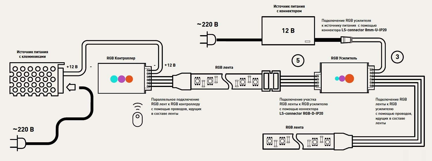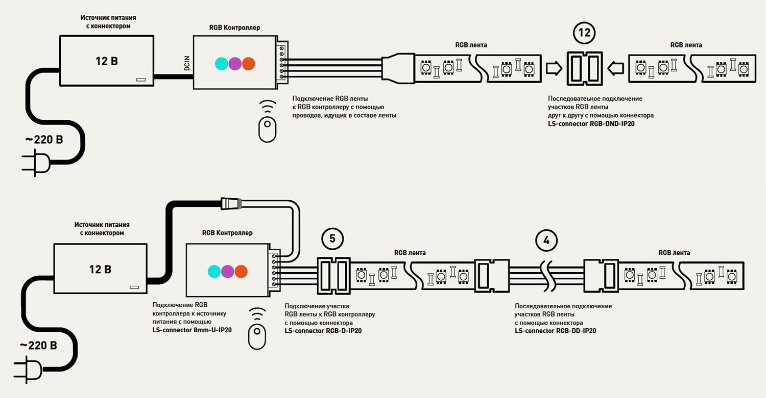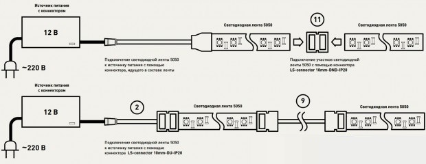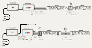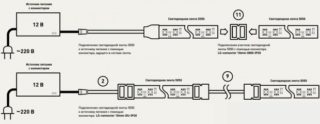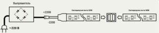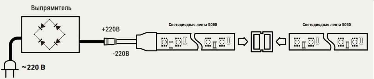 Schémas de raccordement des rubans LED à un réseau 220 V