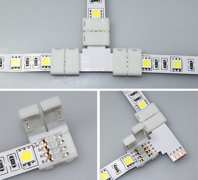 En plus des bandes standard avec une lueur blanche, les modèles RVB sont produits avec des lampes rouges, vertes, bleues et jaunes. En général, il s'agit de trois LED monochromes avec des nuances différentes, qui ont un contact commun pour l'alimentation et des contacts différents pour la gradation de l'éclairage. Pour connecter un tel dispositif d'éclairage, un contrôleur 220 V RGB est nécessaire.