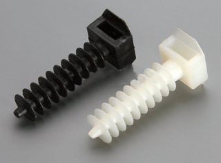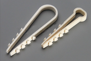 Les produits sont fabriqués en noir et blanc pour des diamètres de câble de 19-15 mm, 5-10 mm et 11-18 mm. L'attache en polyamide a un diamètre de 6 mm et est une boucle avec des loquets aux extrémités inférieures. Avant d'utiliser les pinces à chevilles, vous devrez faire une rainure avec un perforateur, installer des attaches et fixer le câblage. L'inconvénient de la technologie est la sélection stricte du diamètre du câble à la taille des pinces à chevilles.